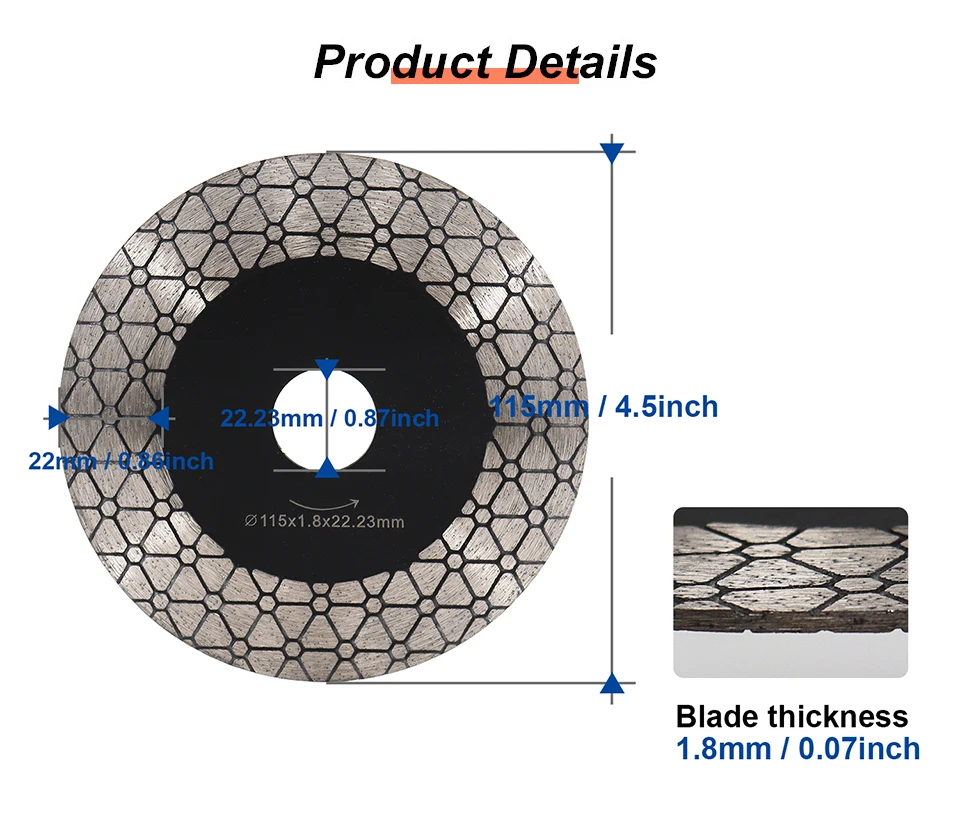 115mm/125mm diamond saw blade, diamond cutting blade for tiles, porcelain and marble 1 piece