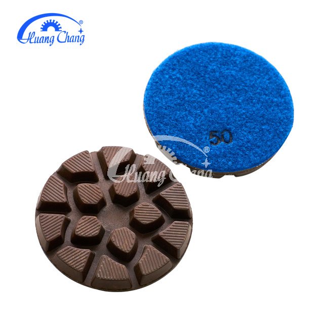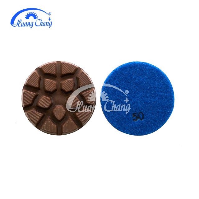 3-inch diameter resin-bonded copper-core diamond rigid polishing pad, suitable for grinding concrete, terrazzo, granite, and marble stone surfaces.