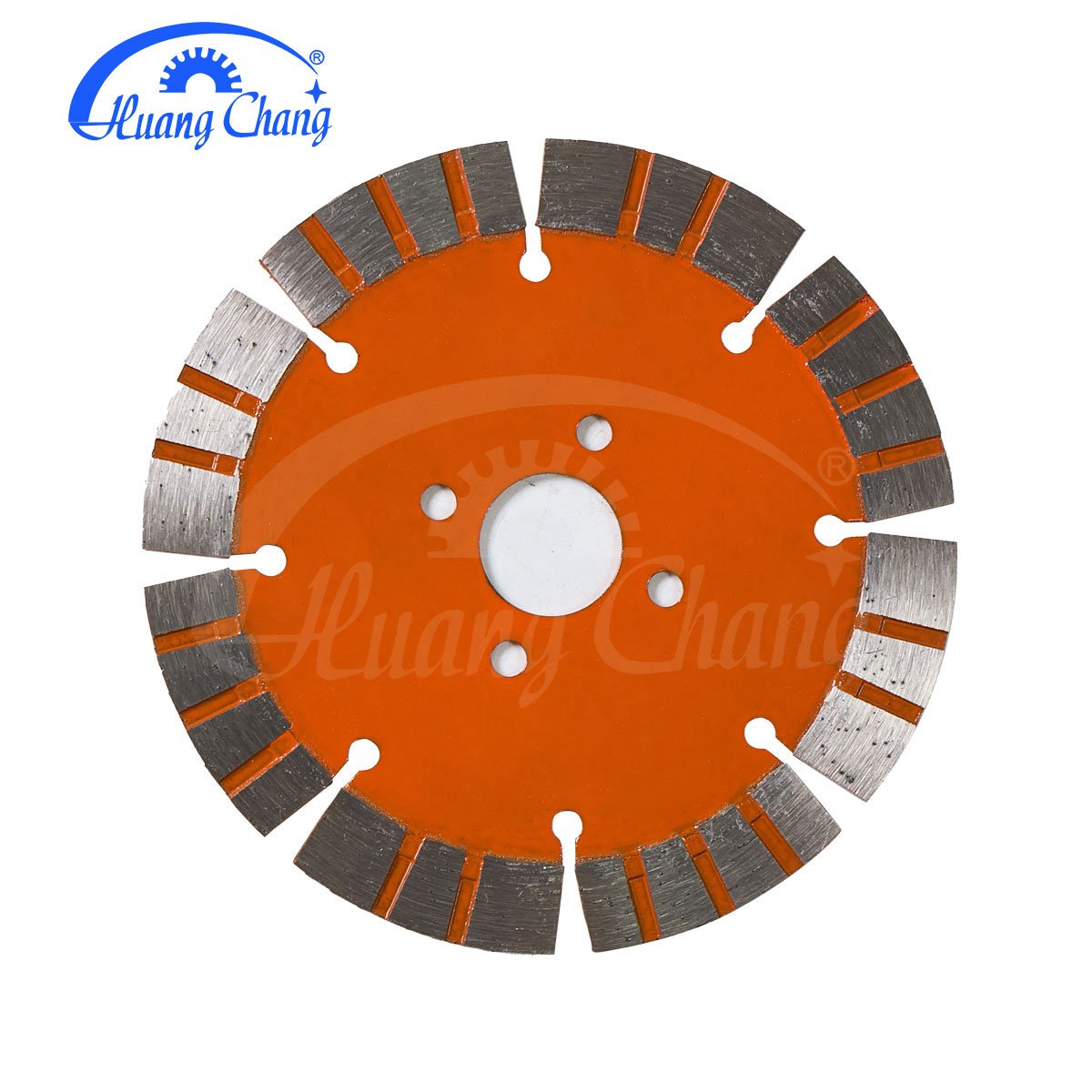 Turbo-edged continuous-cut blade with additional side diamond segments enhances cutting depth and durability in hard granite applications