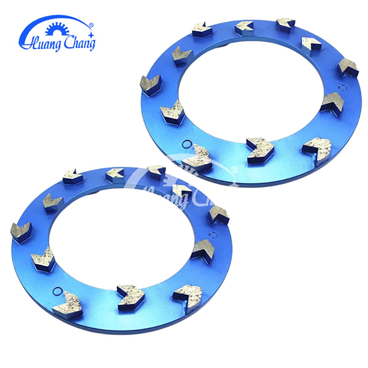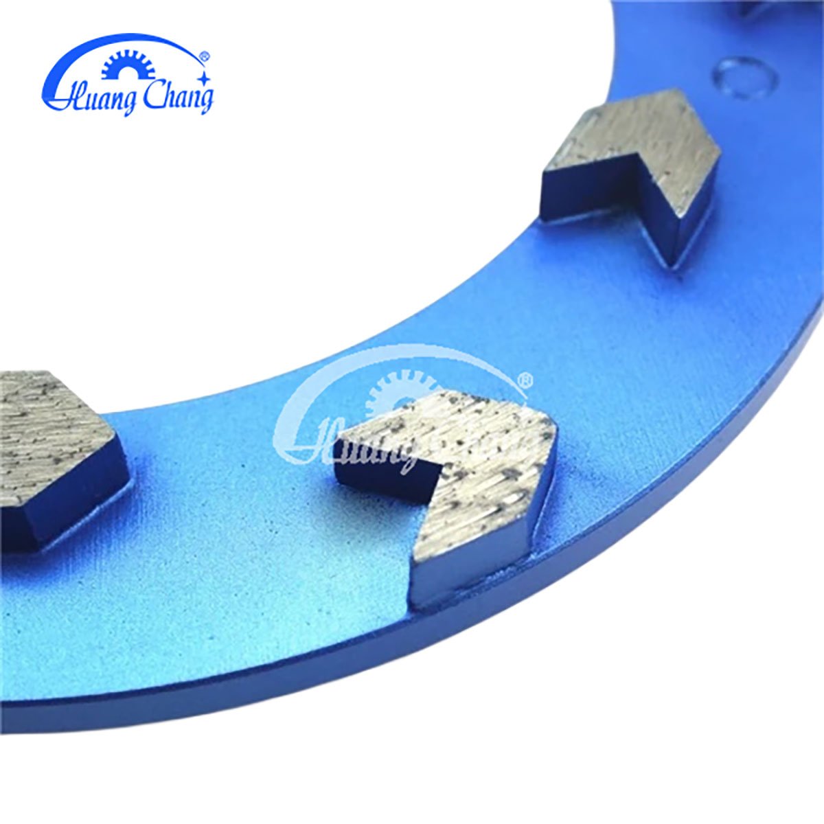 This 240mm diamond grinding disc features a 12-blade arrowhead diamond saw blade design. Through welding, the blades form a dual-ring structure, maximising the disc’s output efficiency. Equipped with #16 arrowhead diamond saw blades, this tool is particularly suited for coarse grinding of concrete floors and removing thin coatings such as paint and varnish. Huangchang Tools offers multiple bonding agent formulations for precise matching to varying concrete characteristics.