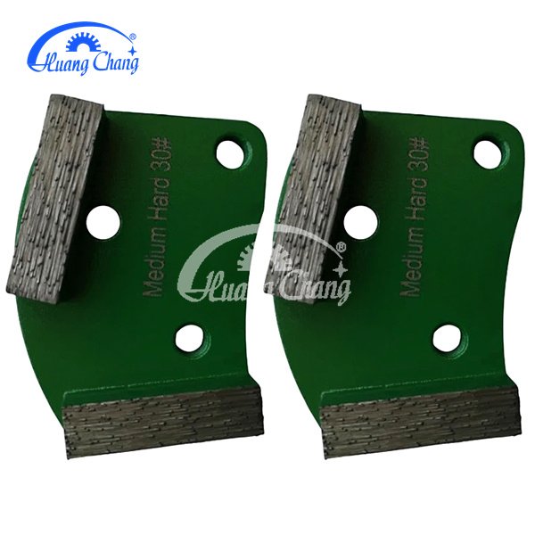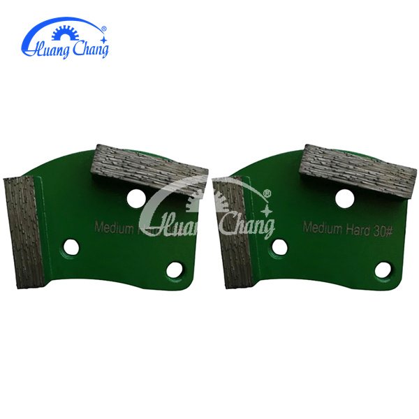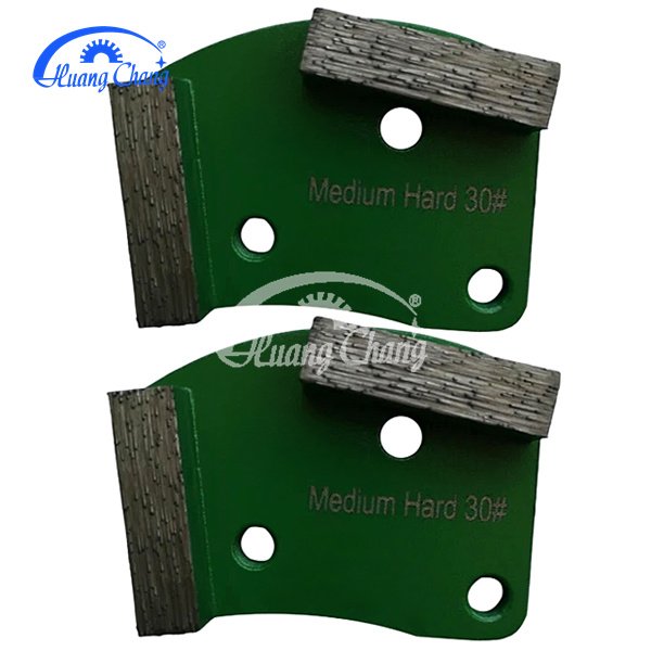 Quickly change diamond tips of varying shapes. Suitable for floor grinders with a dual-lever arrow button. These metal-bond grinding tips can be used wet or dry.