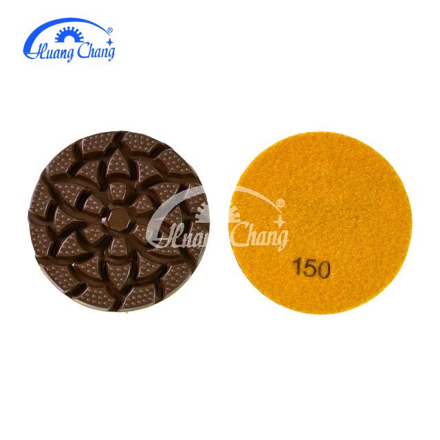 Huangchang 3-inch × 6-mm copper hybrid bond dry transition polishing pad combines resin and metal materials. Its design integrates the cutting power of metal-bonded diamond with the flexibility of resin polishing pads, making it ideal for eliminating scratches and achieving seamless transitions between metal and resin polishing processes. This product is also suitable for initial floor grinding in polishing workflows.