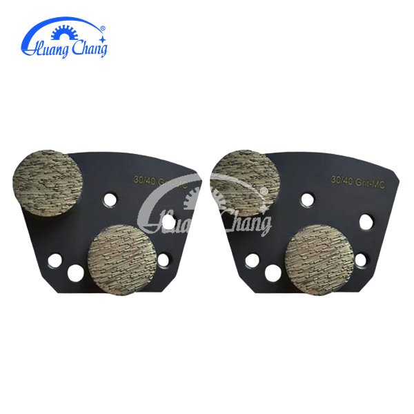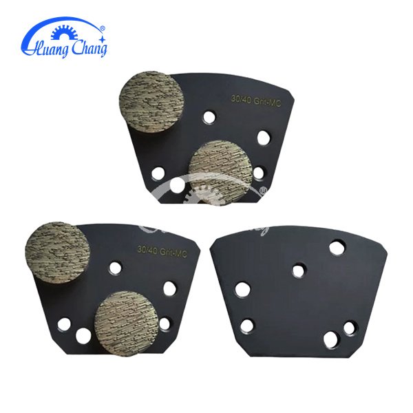 It adopts a fan-shaped plus three 9mm hole interface design, and is equipped with two 25*13mm round blades, two 40*12*12mm long blades and two 13 high pointed blades. It can be used on most floor grinders at home and abroad. It is widely suitable for coarse, medium and fine grinding of various types of concrete, epoxy floor, marble, terrazzo and other floors. The product has a fast grinding speed and a smooth grinding effect.