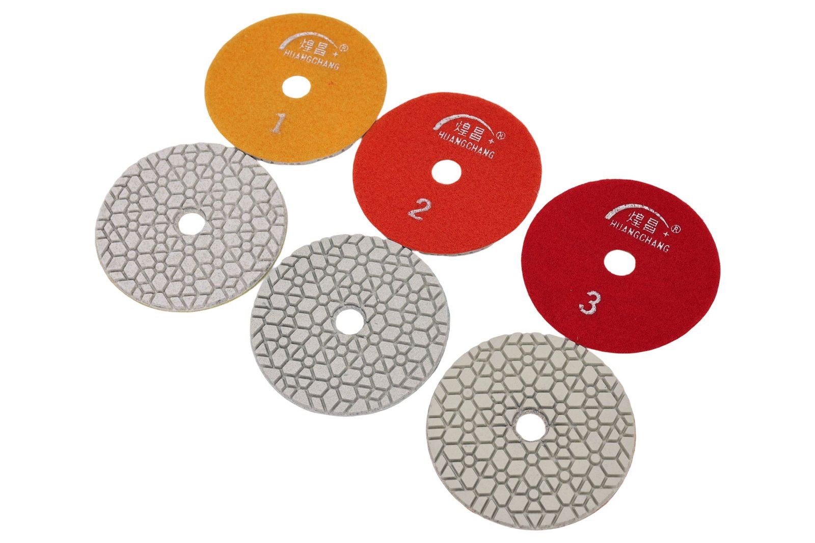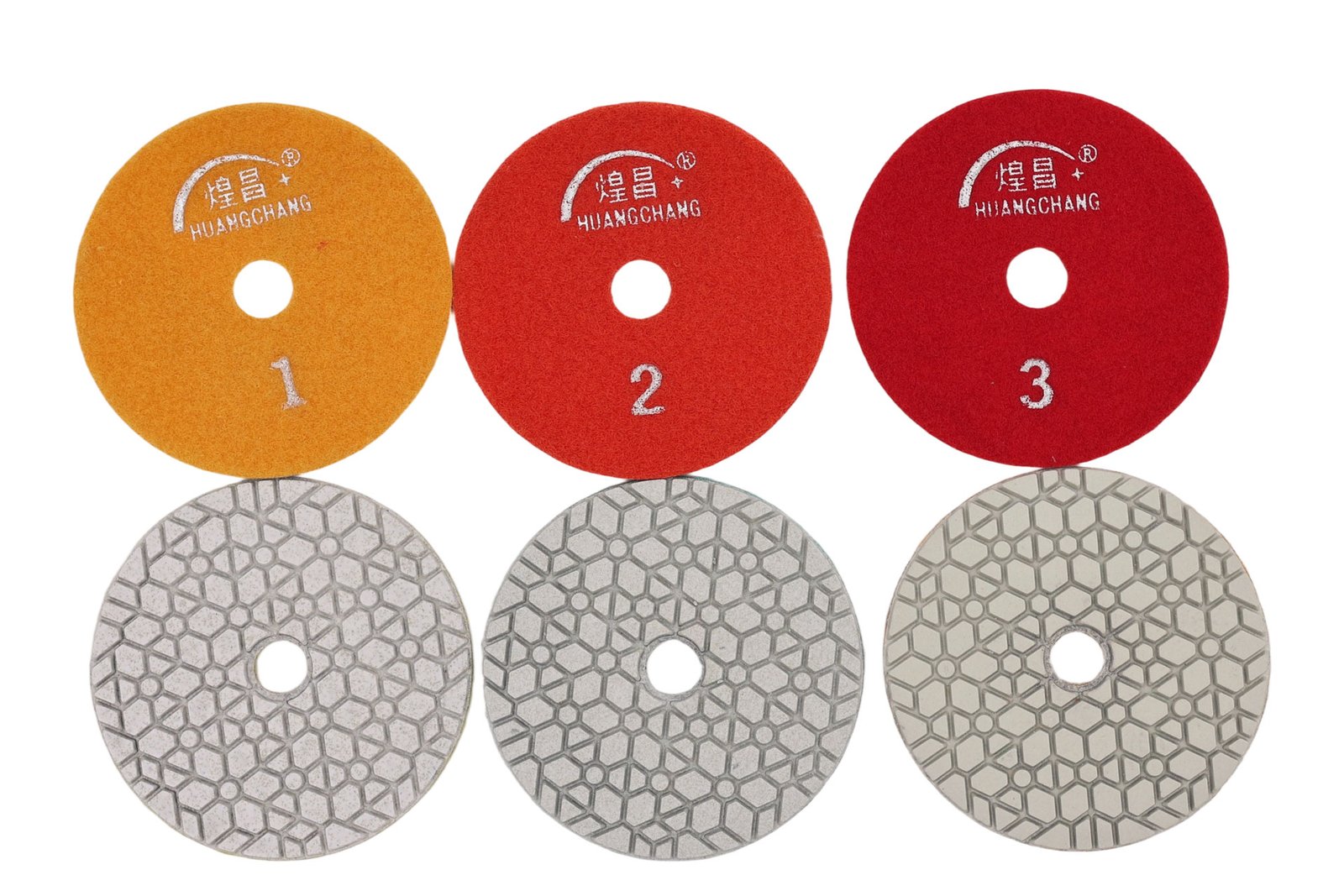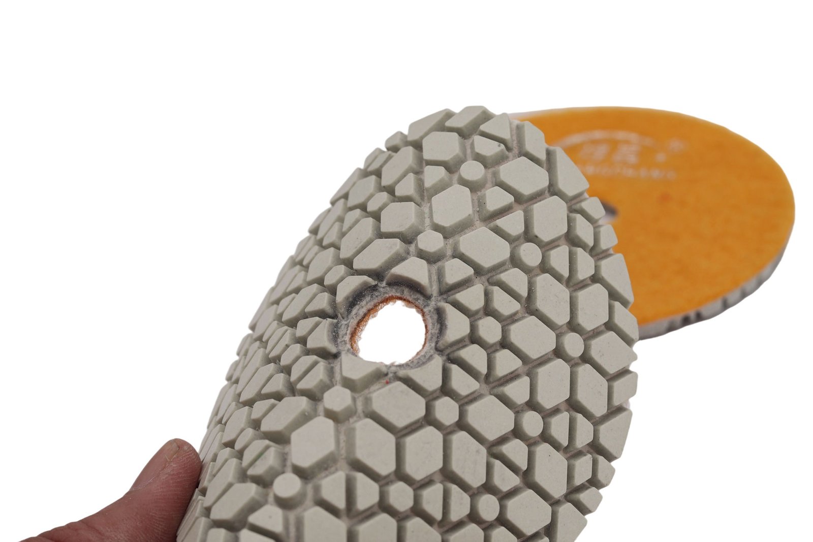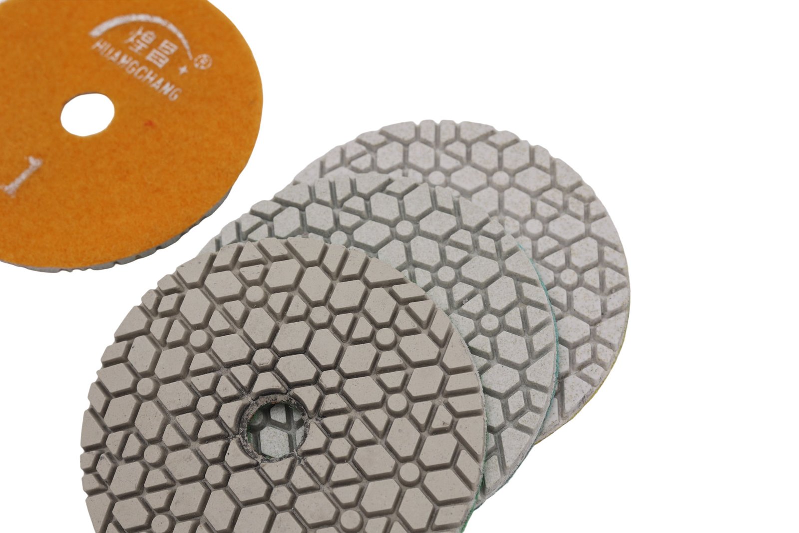 Geometric Water Flow Guidance Technology The geometric pattern design enables water to flow more efficiently through the polishing pad, preventing water drift and achieving stronger contact with the stone surface. Compared to “brick-pattern” polishing pads, the GWD pattern delivers faster and superior polishing results.