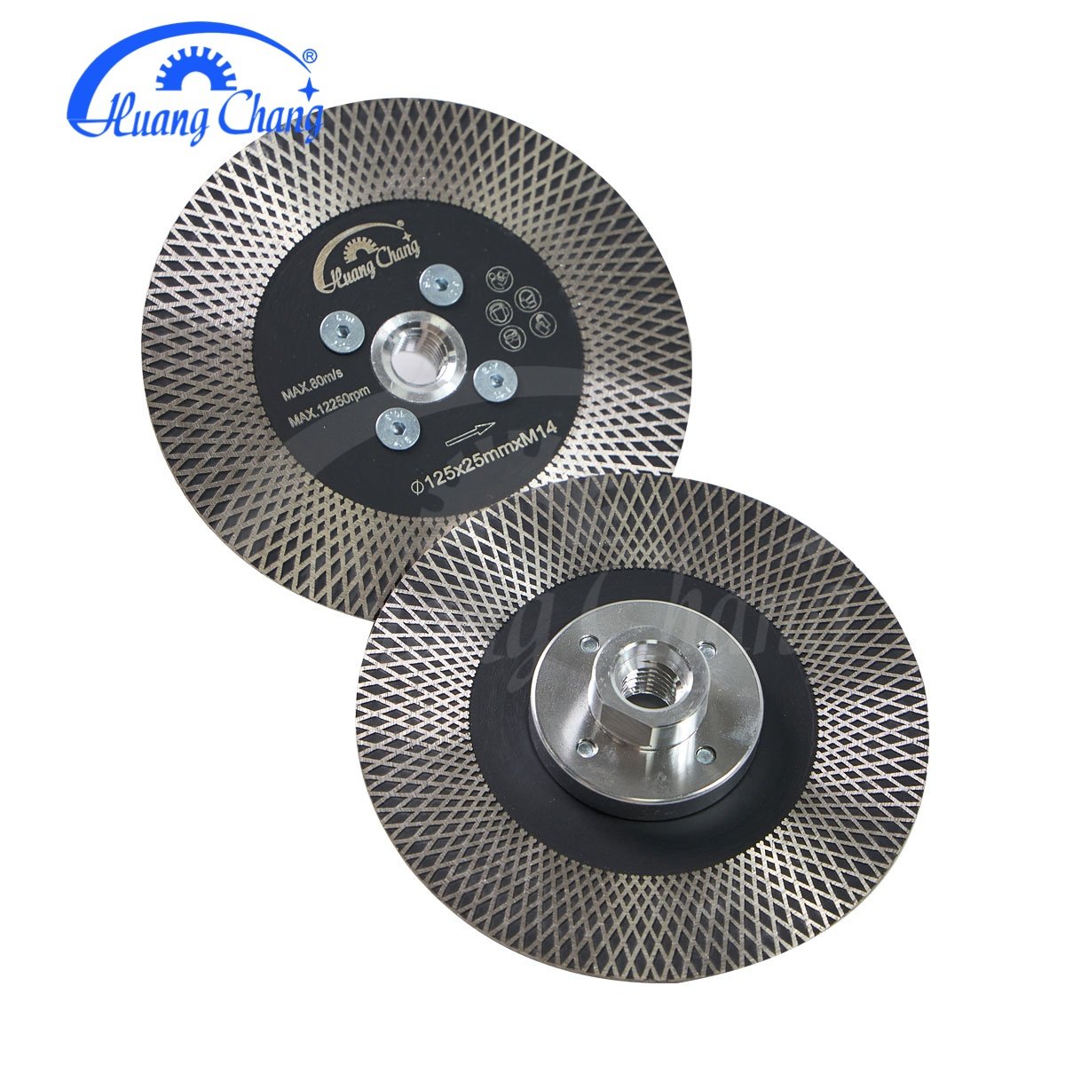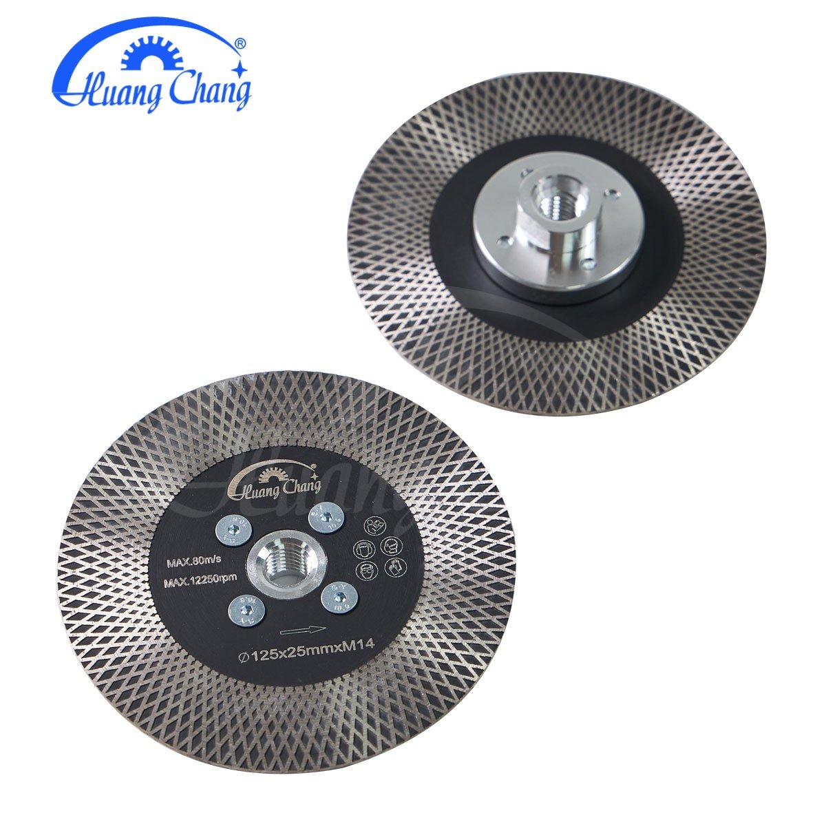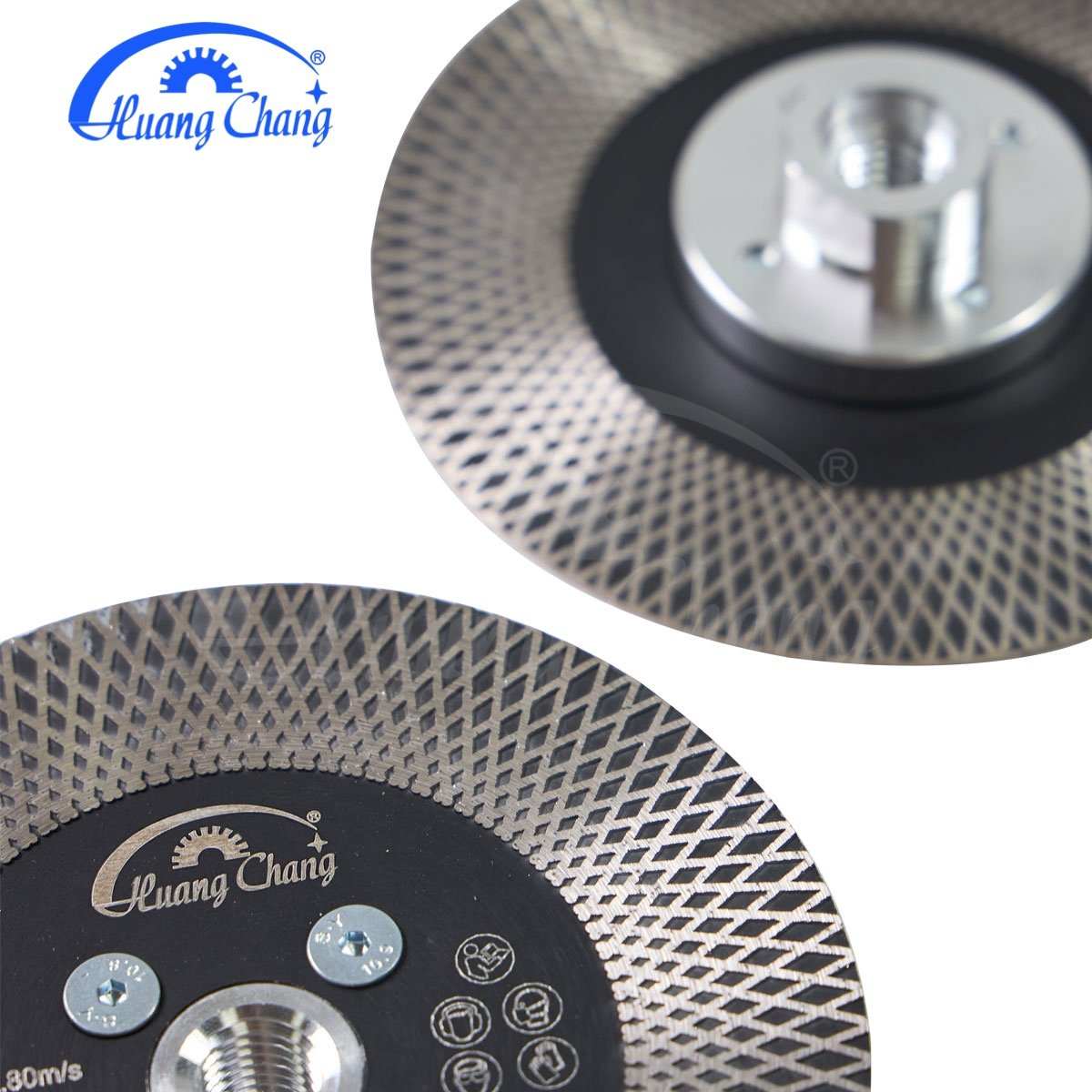 Suitable for wet or dry cutting and grinding of ceramic, tile, marble, and artificial stone, it delivers ultra-clean, spark-free, and chip-free cutting. Machine: Angel Grinder, maximum speed 13,300 rpm.
